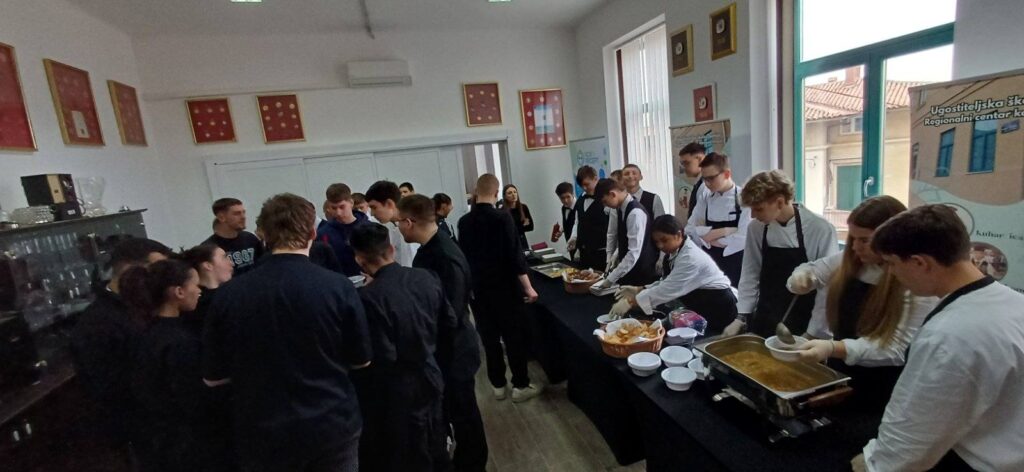 Učenici su u sklopu modula “Temeljne vještine u ugostiteljstvu”, “Procesi obrade namirnica”, “Komunikacija u ugostiteljstvu” te “Organizacija rada u ugostiteljstvu” savladali osnovne termičke obrade namirnica, rukovanje potrebnom opremom kao i razlikovanje nositelja turističke ponude i potražnje na primjeru zadane aktivnosti.