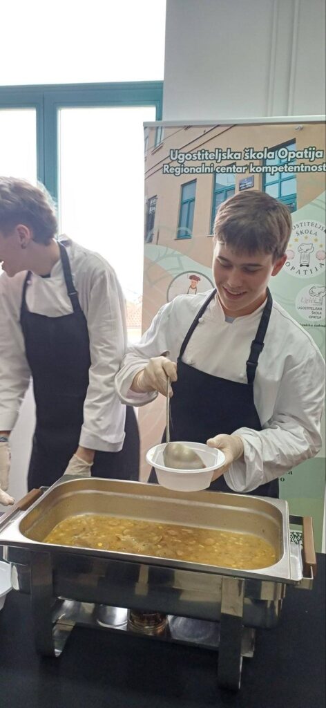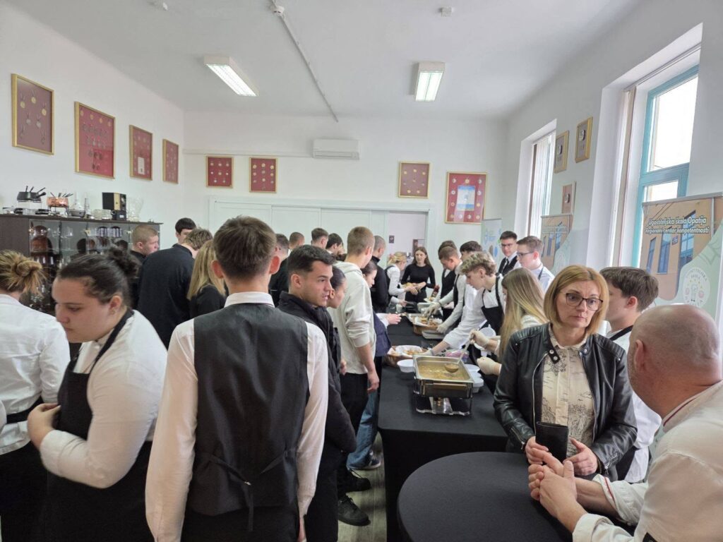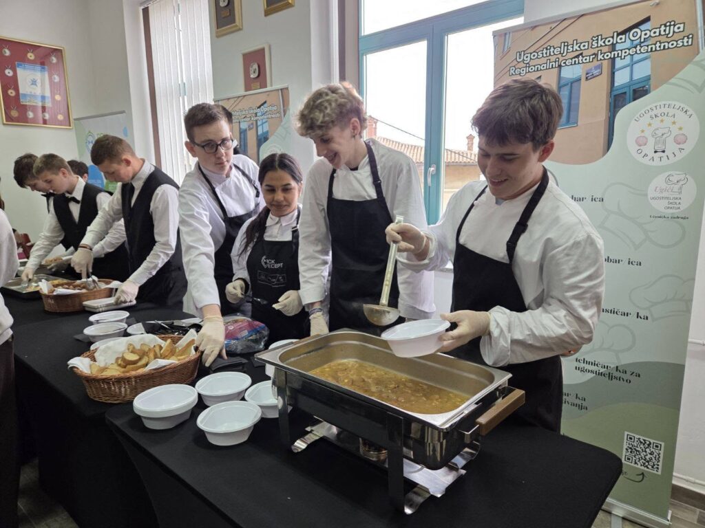 U sklopu modularne nastave provodila su se aktivnosti “Činka-Pal Time” i “Komunikacija u restoranu”. Učenici 1.2. i 1.3. razreda Ugostiteljske škole Opatija su dana 14.4.2026. uz vodstvo nastavnica Nikoline Marčelje Poščić, Jasne Visković, Sandre Viskić, Lee Kovačić te nastavnika Davora Capana, Hrvoja Margana i Maria Nosića pripremali i posluživali palačinke i fritule svojim kolegama i ostalim nastavnicima.